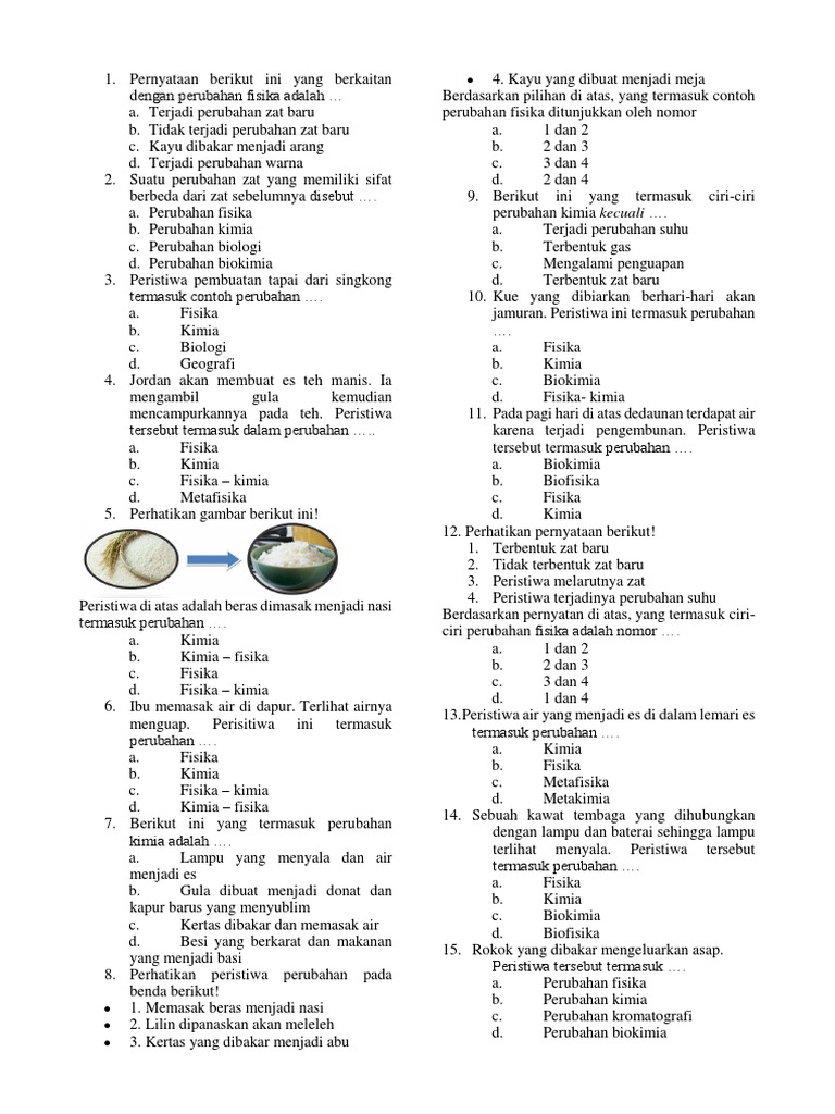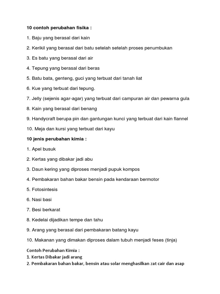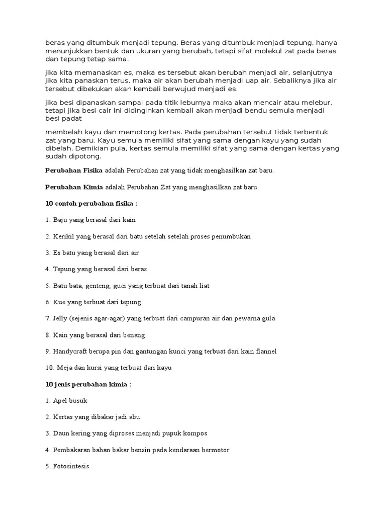 Contoh Soal Perubahan Fisika Dan Kimia Kelas 7 - Bagikan Contoh