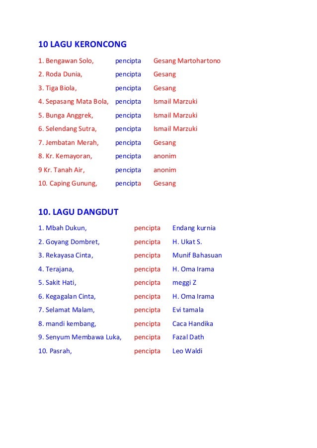 Sebutkan 10 judul lagu Indonesia beserta makna dan penciptanya …