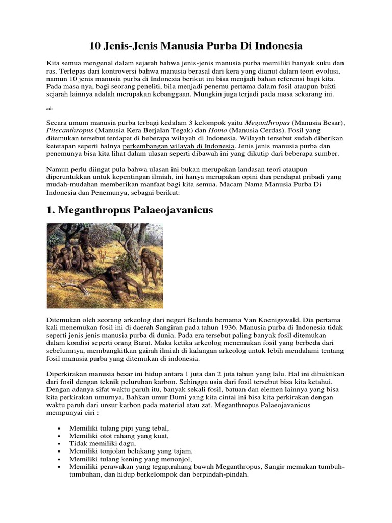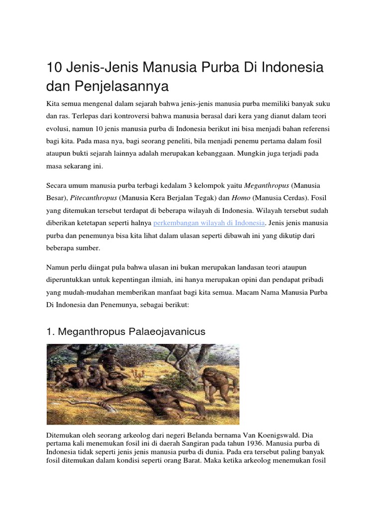 Sebutkan Dan Jelaskan Jenis Jenis Manusia Purba Di Indonesia - Sebutkan Itu
