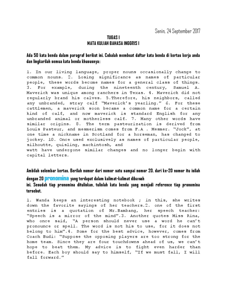 pronomina: Senin, 24 September 2017