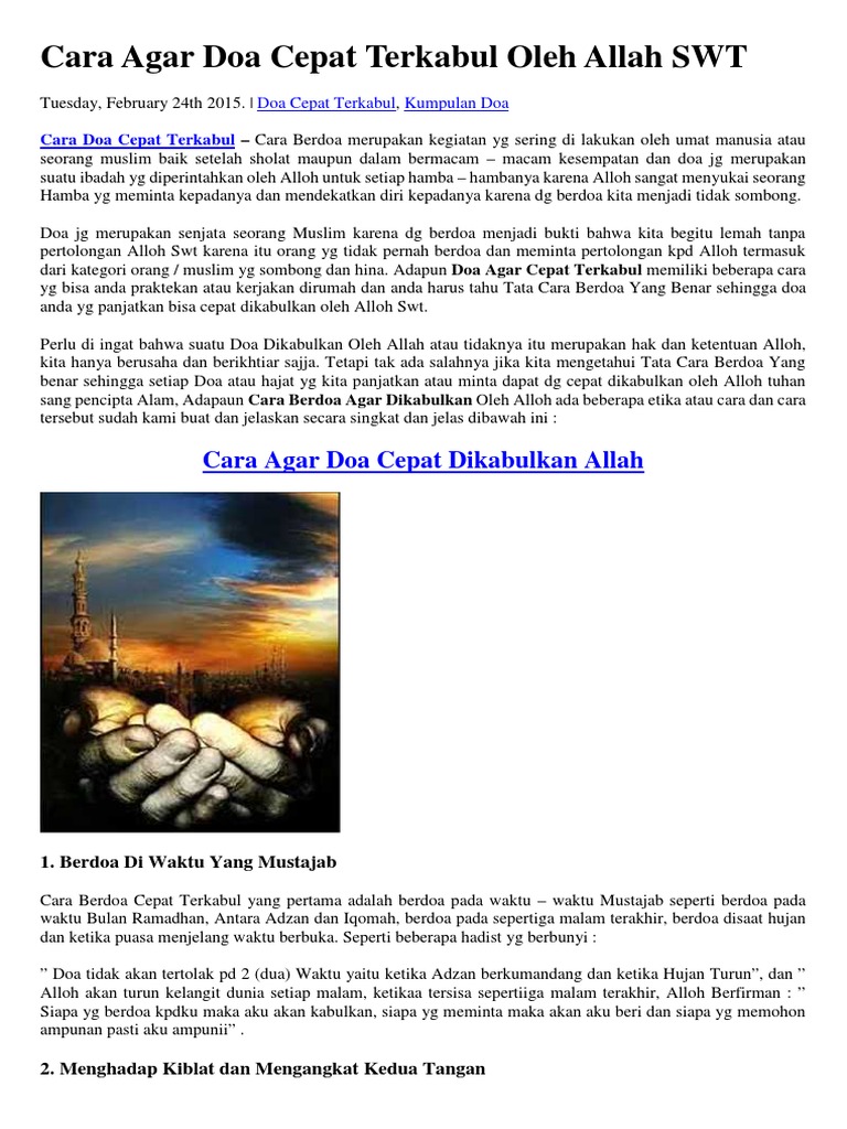CARA AGAR DOA KITA CEPAT TERKABUL / DIKABULKAN ALLAH SWT : Cara …