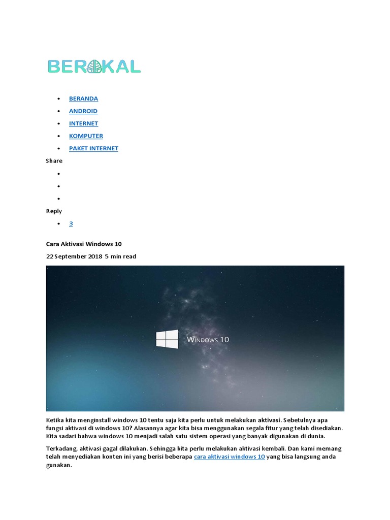 Cara Aktivasi Windows 10 – sofw4re.wordpress.com
