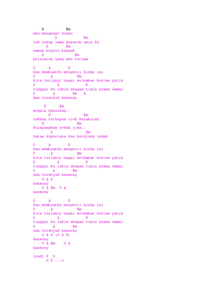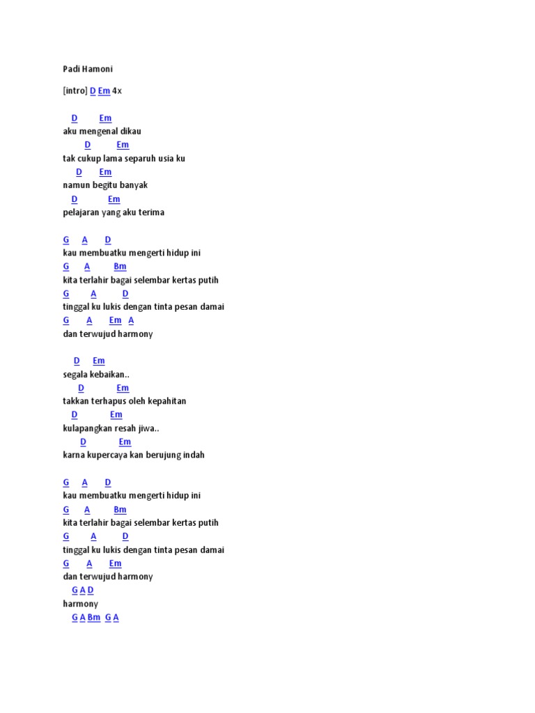 Chord Harmoni - Padi [intro] D Em 4x… - Chord Gitar Akustik Version | Facebook