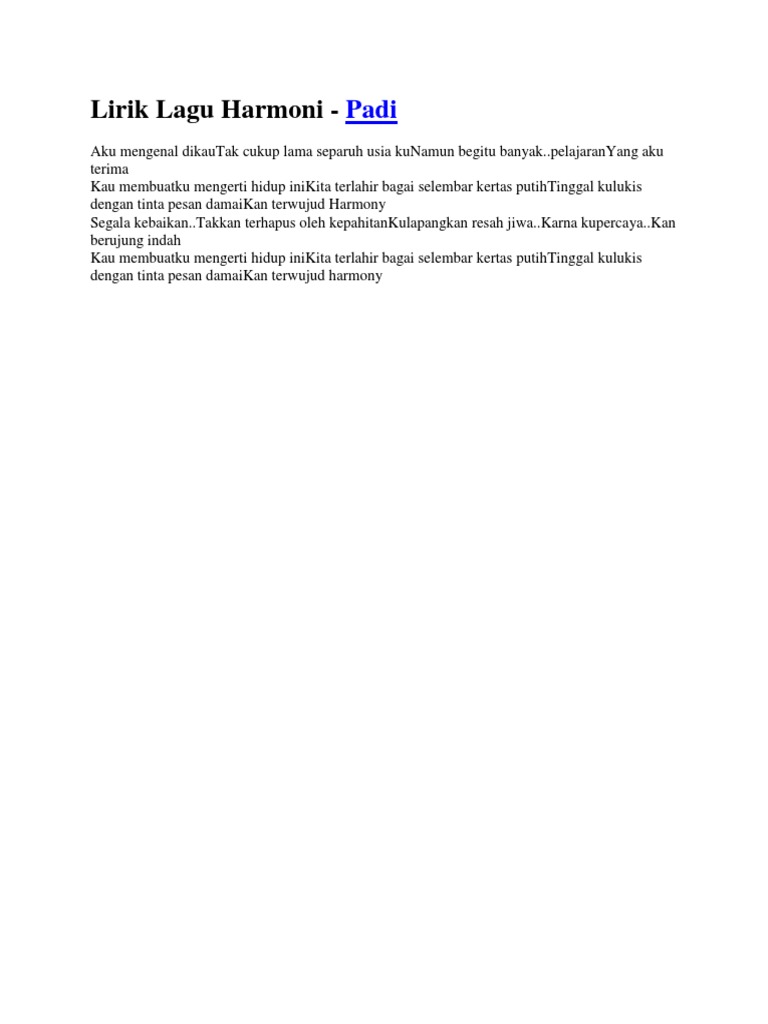 Padi: Harmony Lyrics - ShareSong