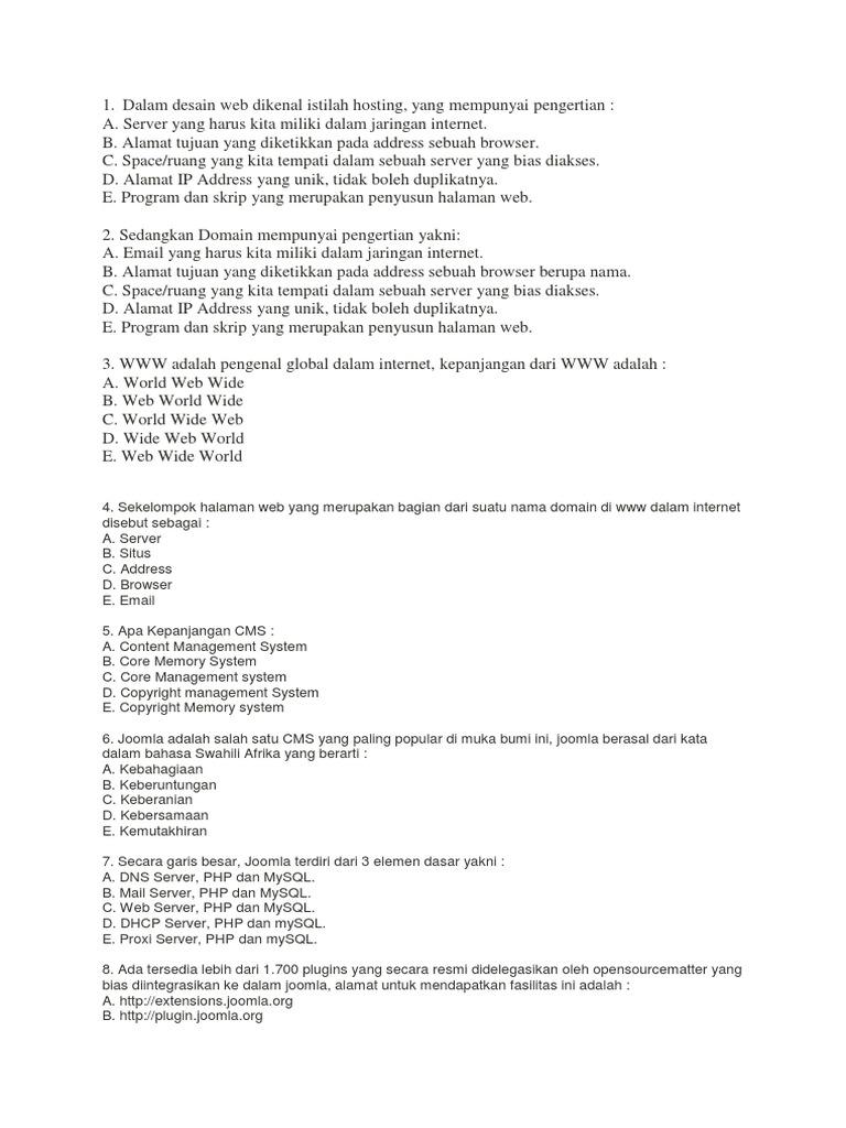 1. Alamat-alamat dalam halaman web dikenal dengan nama…. a. Web b …
