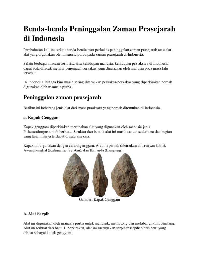di bawah ini yang termasuk sumber benda atau alat zaman praaksara adalah - Brainly.co.id