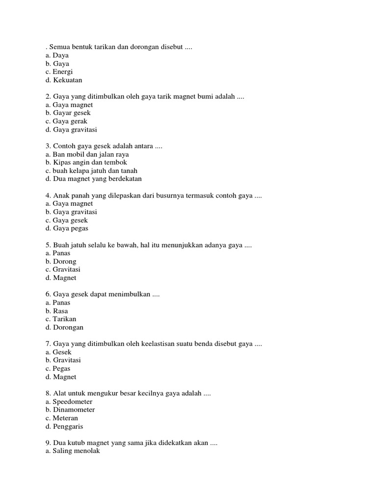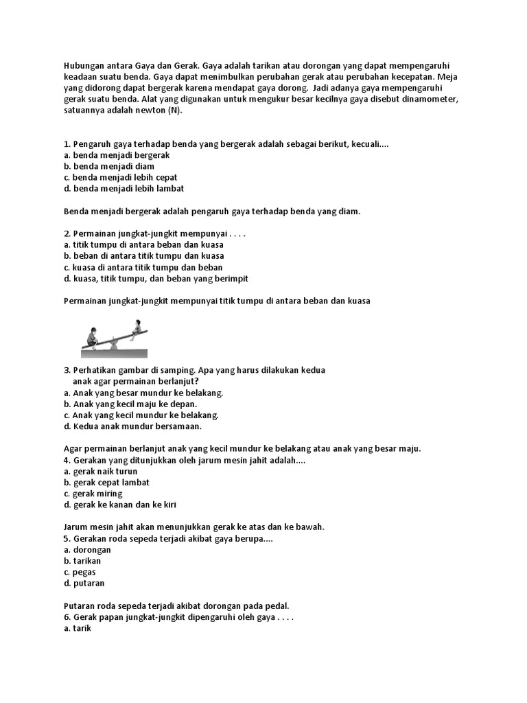 40 Soal IPA SD : GAYA dan Gerak beserta Kunci Jawaban - BARU …