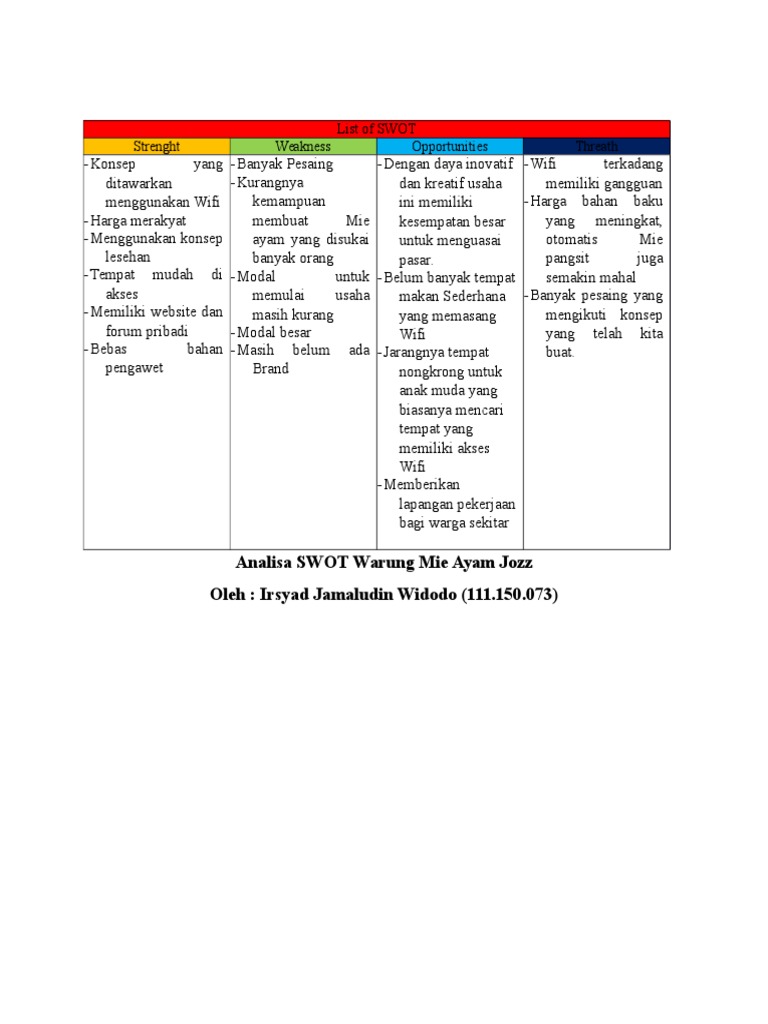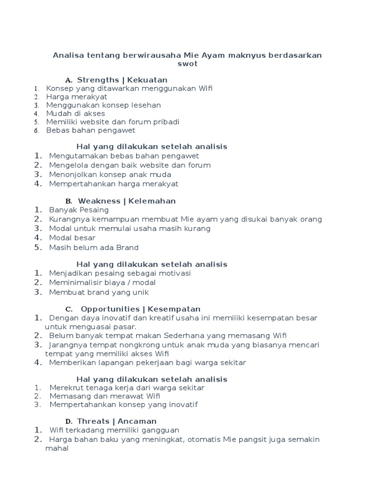 Kumpulan Soal pelajaran 4: Contoh Analisis Swot Makanan Mie Ayam