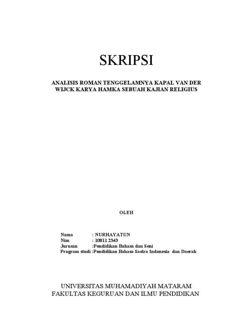 Skripsi Novel Tenggelamnya Kapal Van Der Wijck - Kumpulan Berbagai …