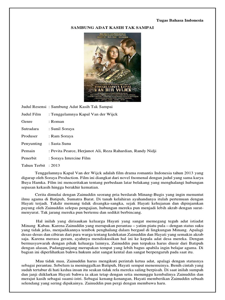Contoh Teks Ulasan Novel Tenggelamnya Kapal Van Der Wijck Berbagi …