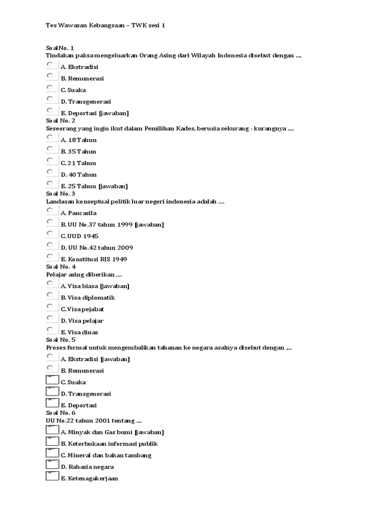 DOC) Kumpulan Soal -Soal Tes Wawasan Kebangsaan (TWK) Lolos CPNS …