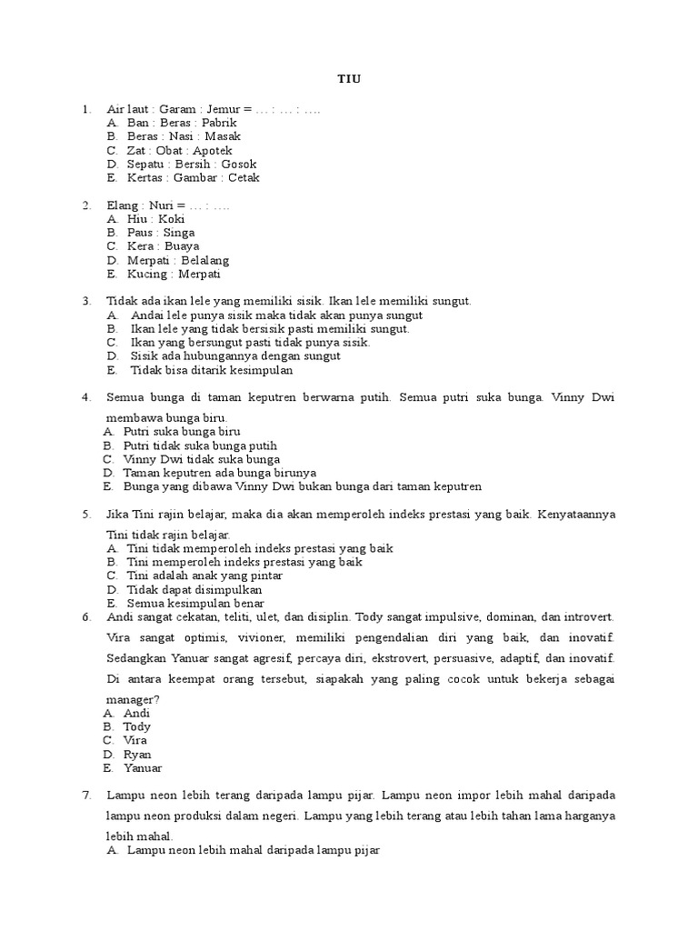 Kumpulan Contoh Soal TIU Test Intelegensia Umum persiapan CPNS …