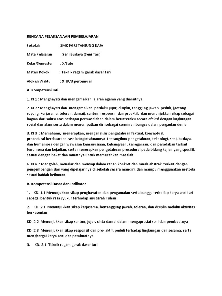 Rpp Teknik Ragam Gerak Dasar Tari
