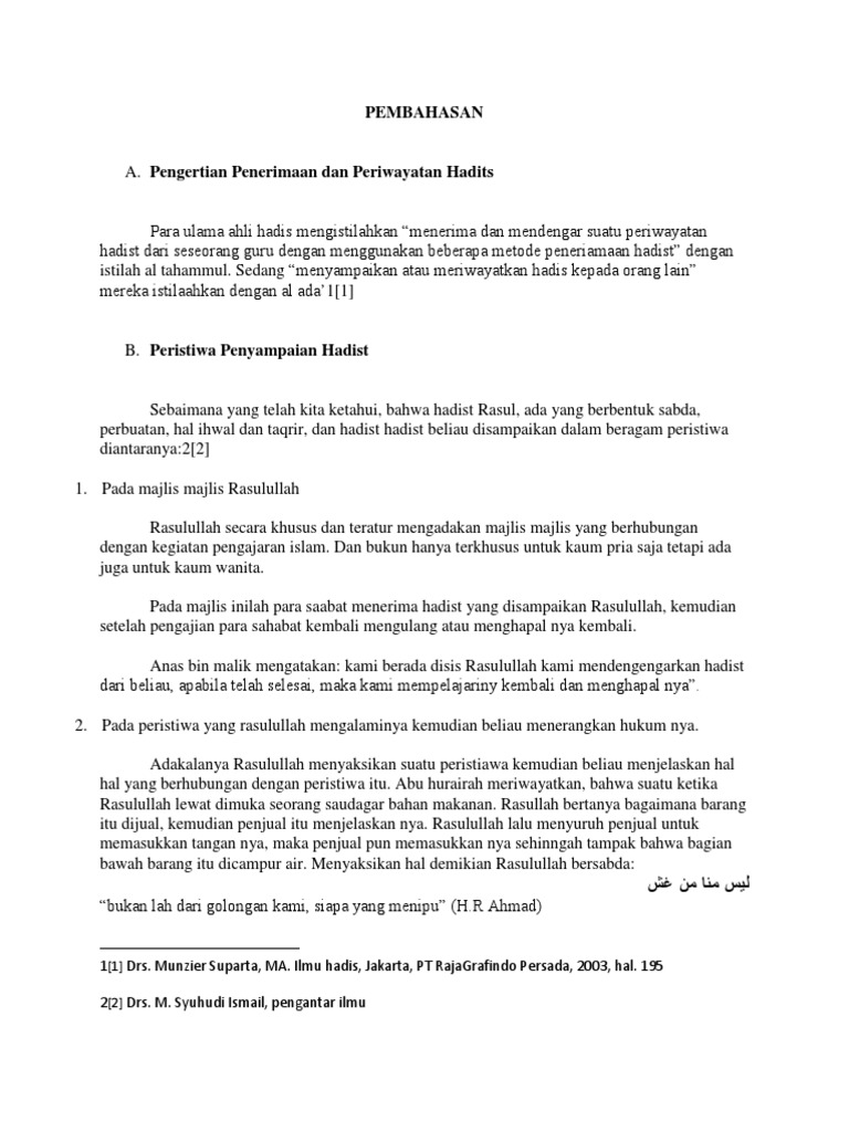 Metode Penerimaan dan Periwayatan Hadis | kholidin