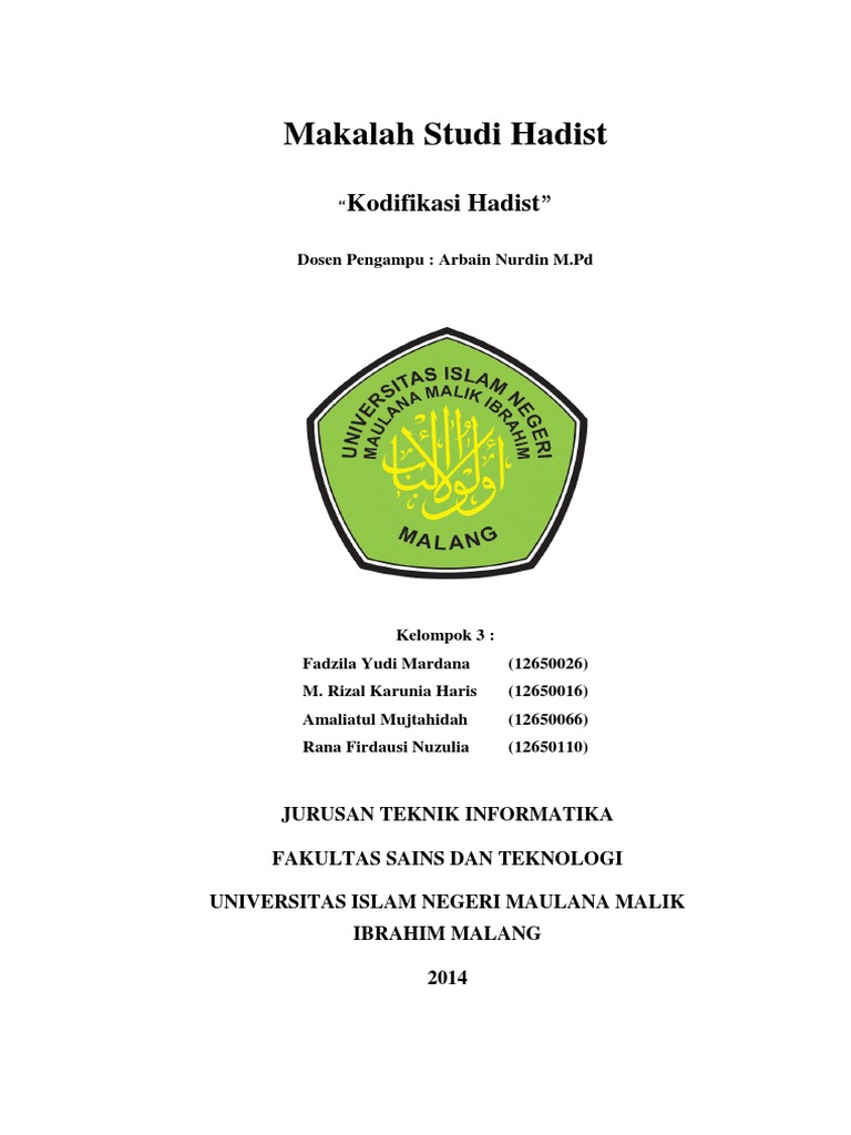 PDF) MAKALAH KODIFIKASI HADIS | choliliyah thoha - Academia.edu