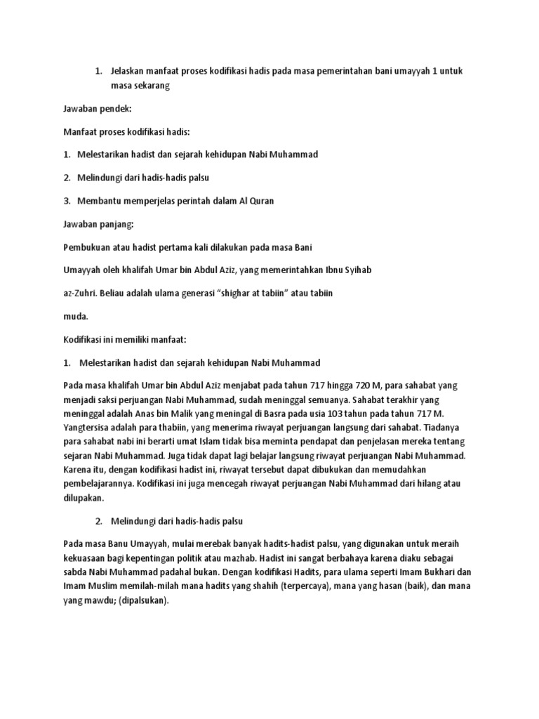 DOC) PRA PASCA KODIFIKASI HADIST - SofiGunawan | Nur S O F I Y A H …