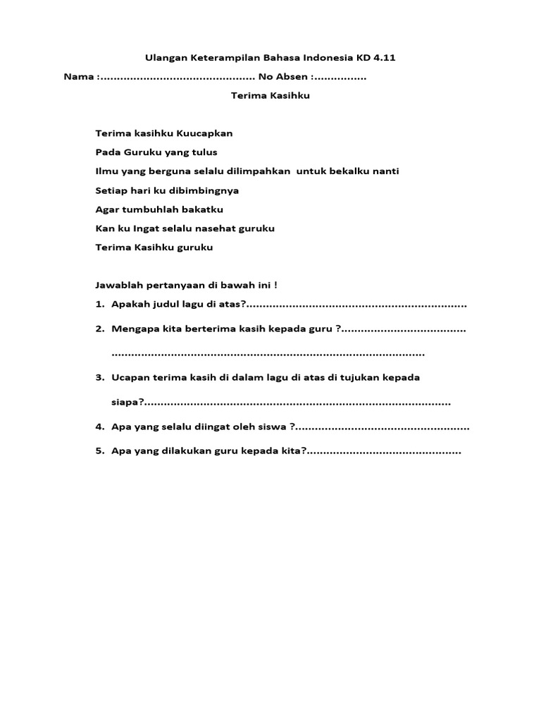 Ulangan Keterampilan Bahasa Indonesia KD 4.docx