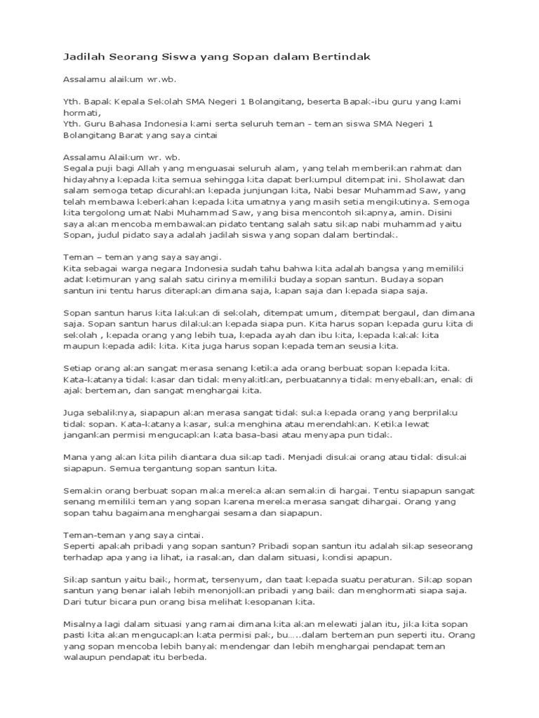 My Pidato Jadilah Seorang Siswa Yang Sopan Dalam Bertindak