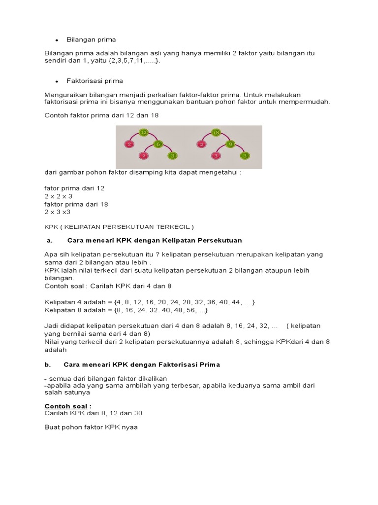 Faktor dan Kelipatan Bilangan Bilangan Prima KPK dan FPB Penerapan …
