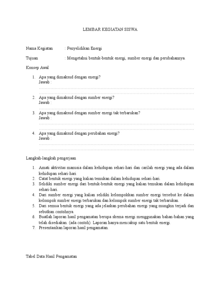 Lks energi alternatif worksheet