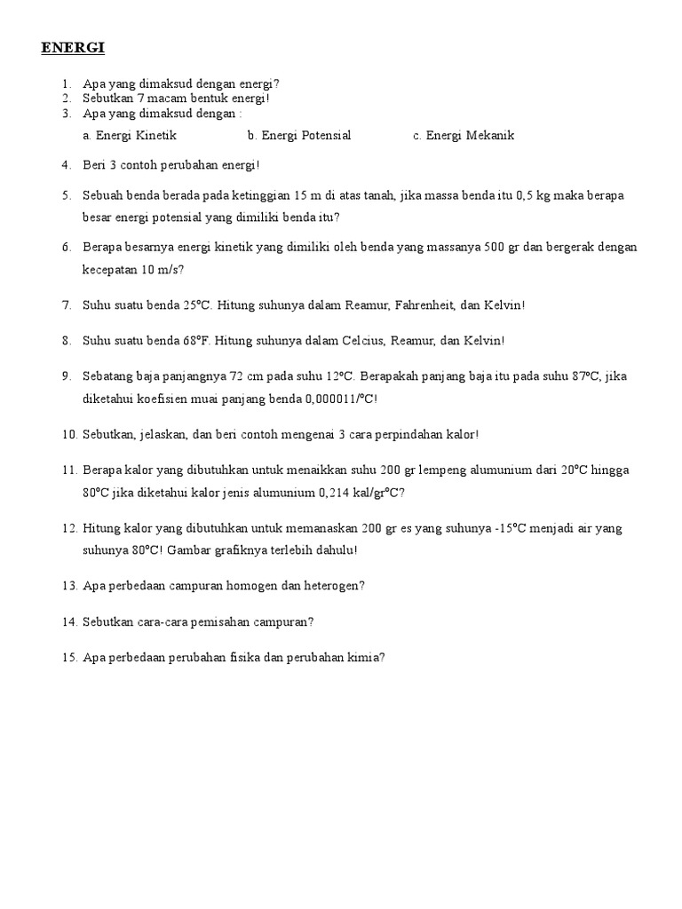 Soal IPA Tentang ENERGI