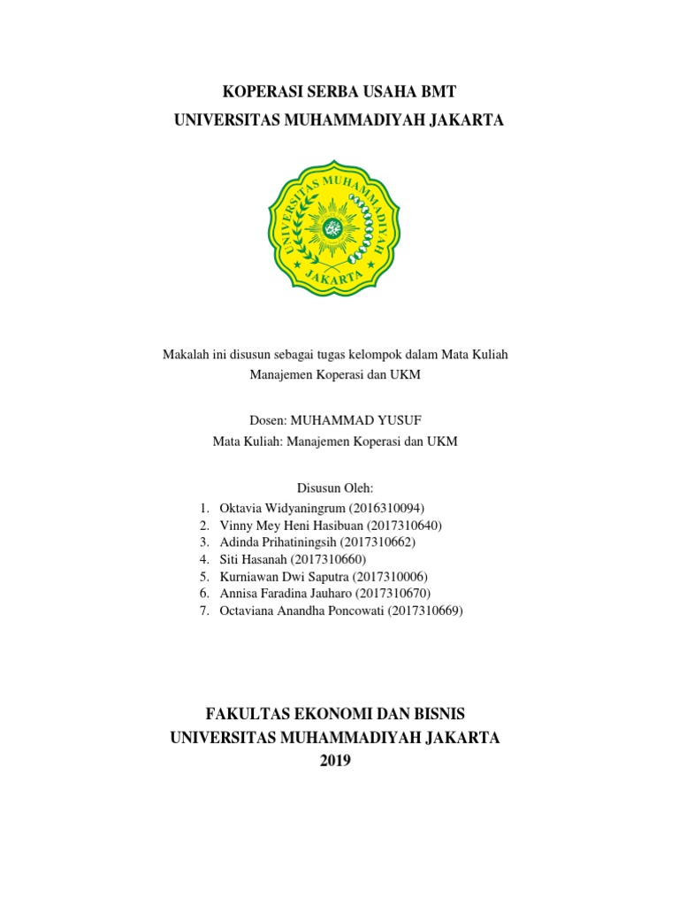 Koperasi Serba Usaha Bmt Universitas Muhammadiyah Jakarta