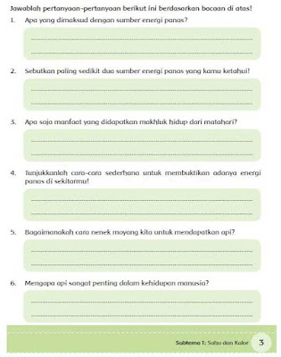 Apa yang Dimaksud dengan Sumber Energi Panas? Jawaban Tema 6 Kelas 5 SD Halaman 3, Suhu dan Kalor - Tribunnews.com Mobile