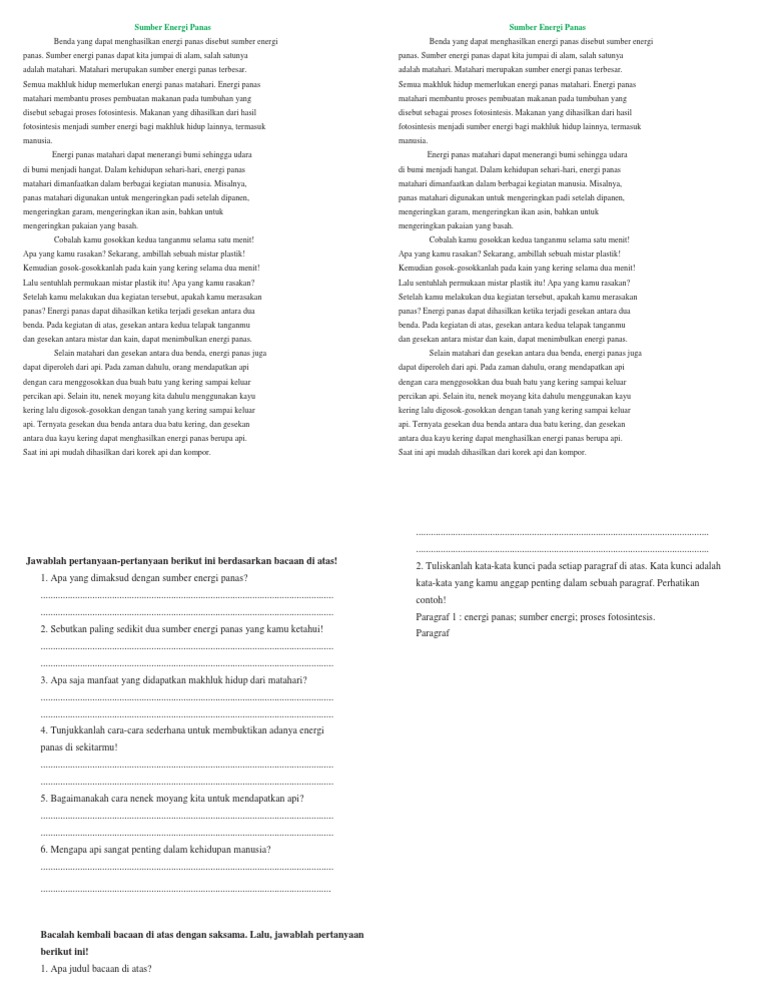 2. tuliskan kata-kata kunci dari paragraf 1 sampai paragraf 4 dari bacaan sumber energi panas 3. - Brainly.co.id