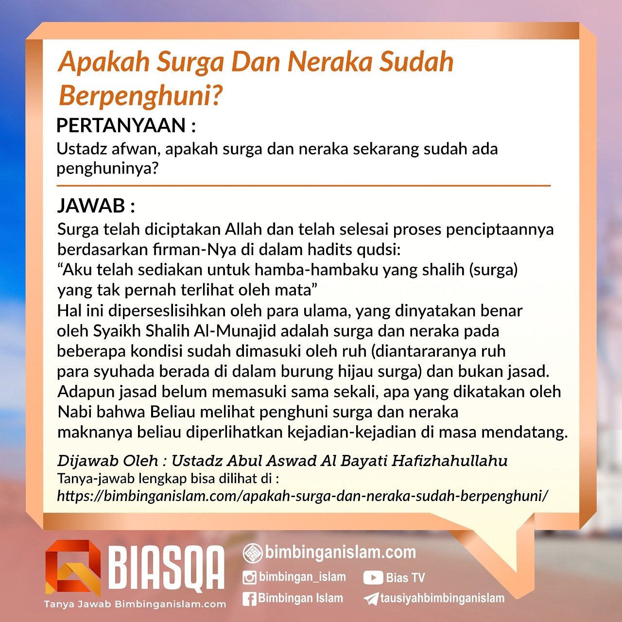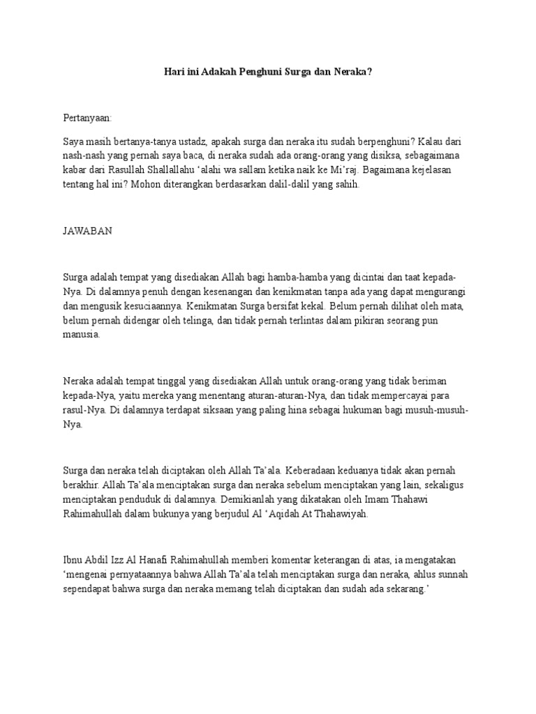 Bimbingan Islam on Twitter: “Apakah Surga Dan Neraka Sudah Berpenghuni? Selengkapnya: https://t.co/pXGT7lD5Xu Wallahu a’lam, wabillahittaufiq. Dijawab dengan ringkas oleh: Ustadz Abul Aswad Al Bayati حفظه الله https://t.co/FyDhrFtIfs | Follow TG, YT, IG,