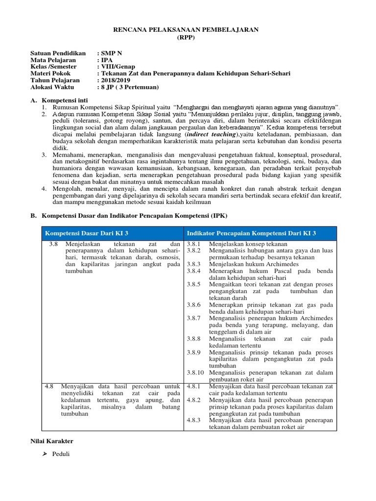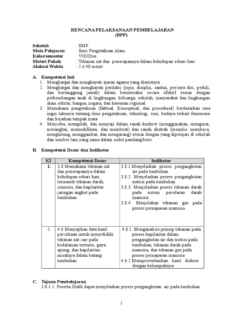 RPP Ipa Kelas 8 Pemanfaatan Tekanan visitasi