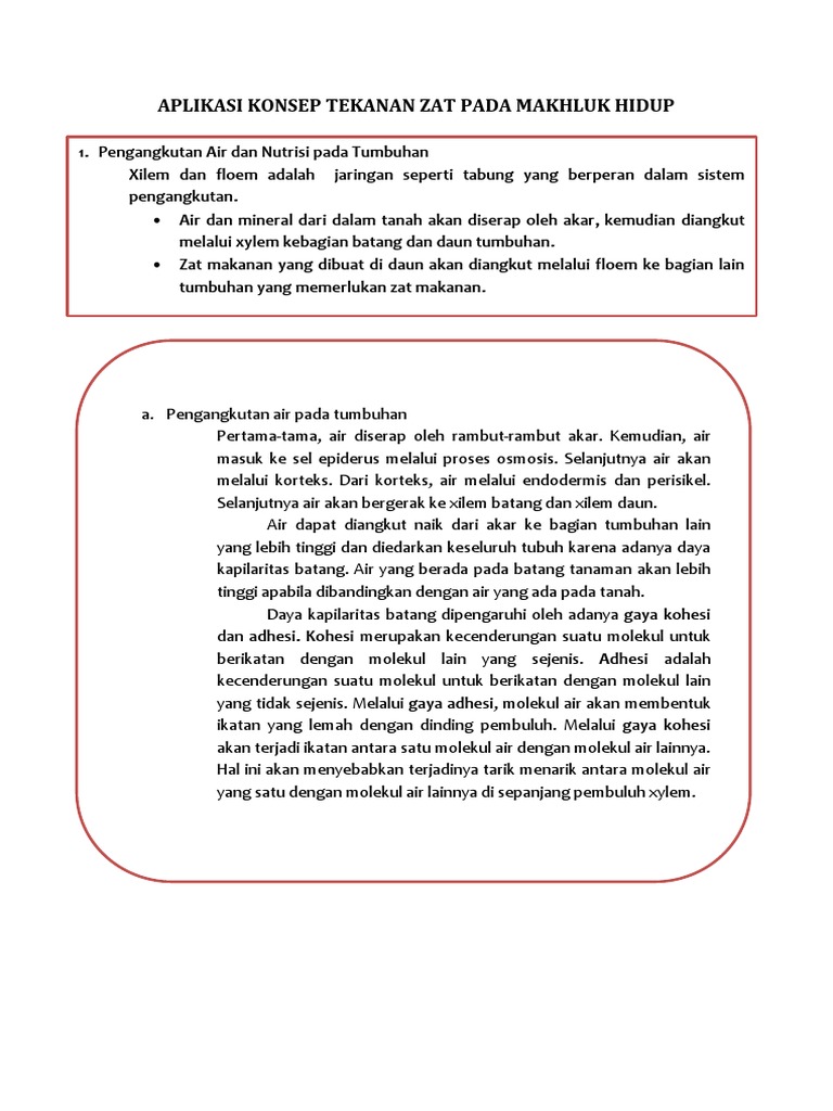 Aplikasi Konsep Tekanan Zat Dalam Makhluk Hidup