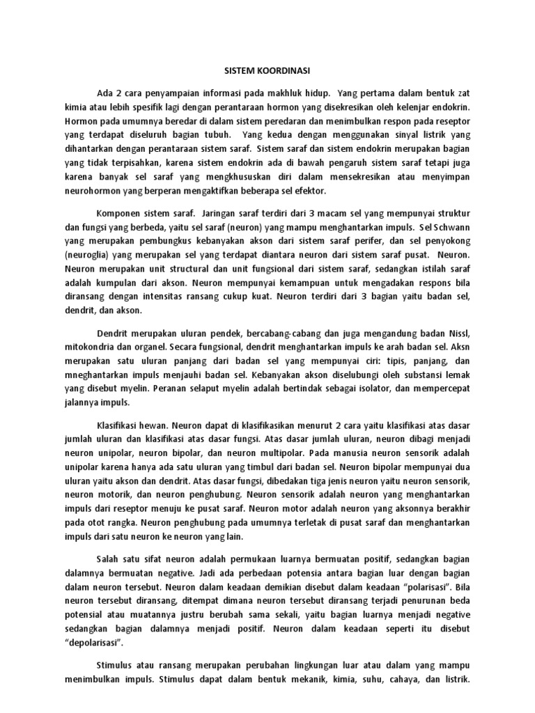 Dendrit merupakan penjuluran pendek yang keluar dari badan sel. Dendrit umumnya bercabangcabang. Dendrit berfungsi membawa rangsang menuju badan sel. - PDF Free Download