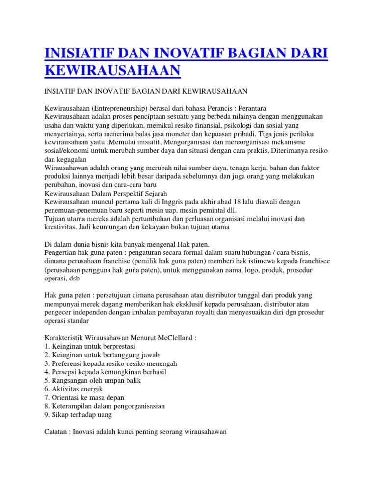 Inisiatif Dan Inovatif Bagian Dari Kewirausahaan