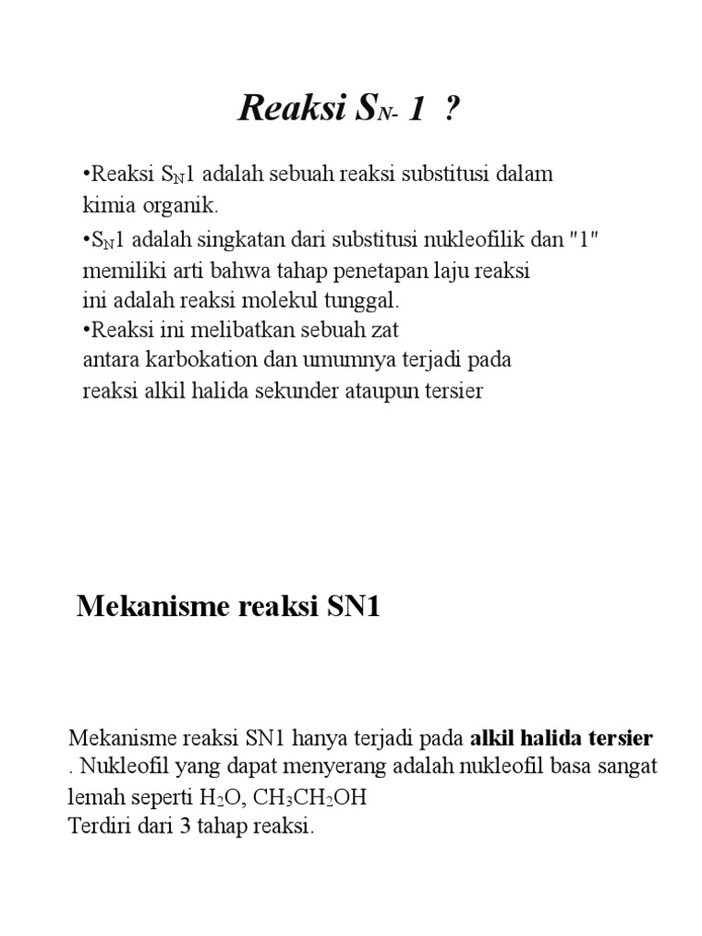 Reaksi S: •S 1 adalah singkatan dari substitusi nukleofilik dan “1”