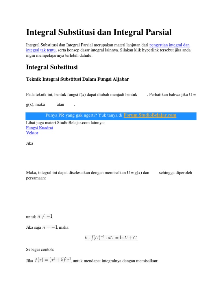 Pengertian Rumus Integral Substitusi & Integral Parsial