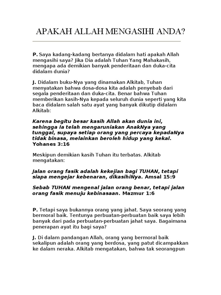 Apakah Allah Mengasihi Anda
