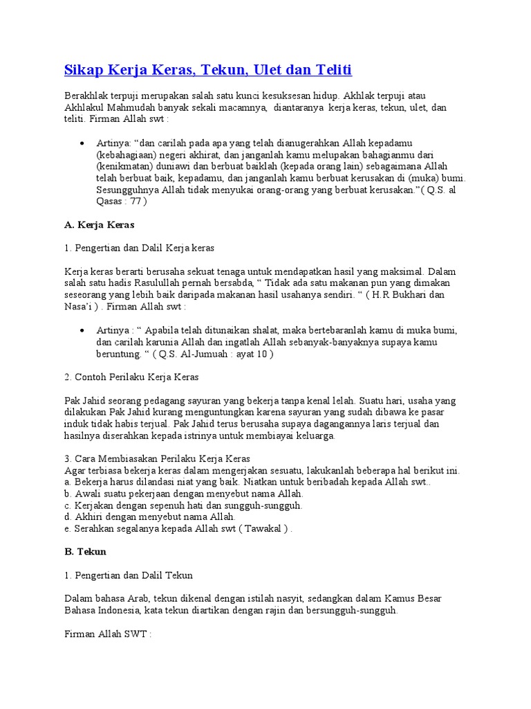 Sikap Kerja Keras, Tekun, Ulet dan Teliti