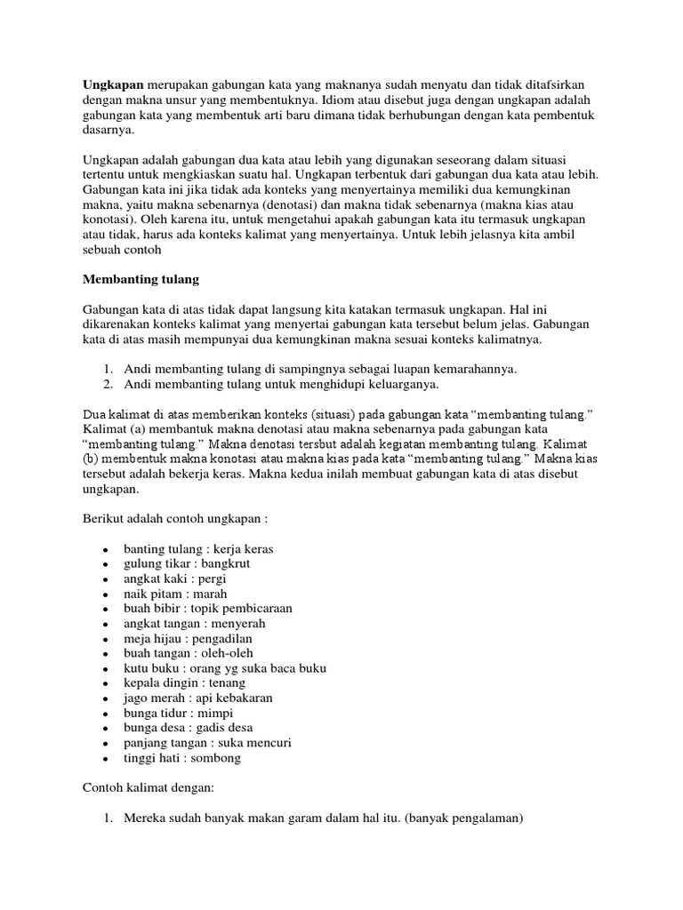 Ungkapan merupakan gabungan kata yang maknanya sudah menyatu dan …
