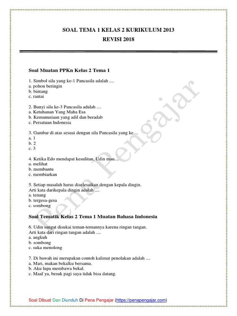 Soal Tema 1 Kelas 2 Kurikulum 2013 REVISI 2018