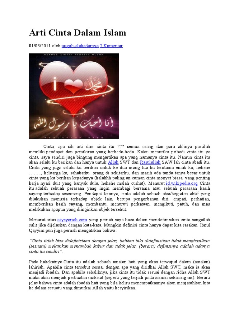 Arti Cinta Dalam Islam: puguh-alakadarnya 2 Komentar