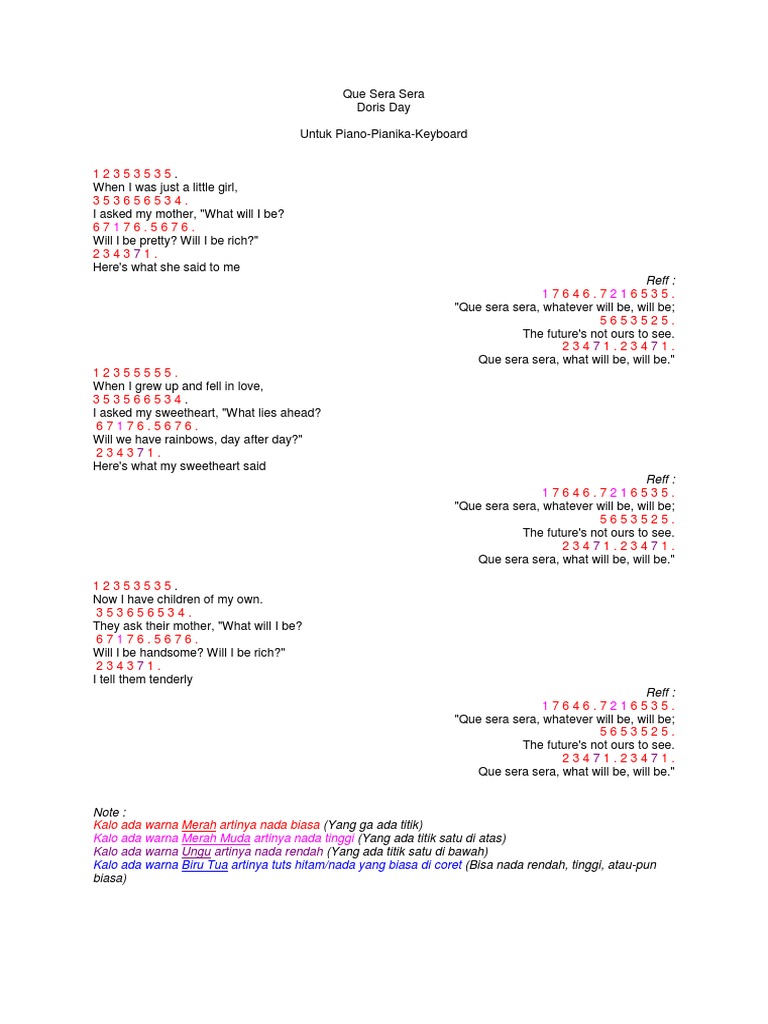 Not Angka Lagu Que Sera Sera