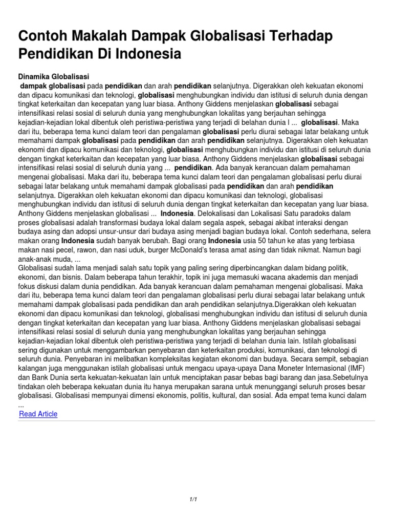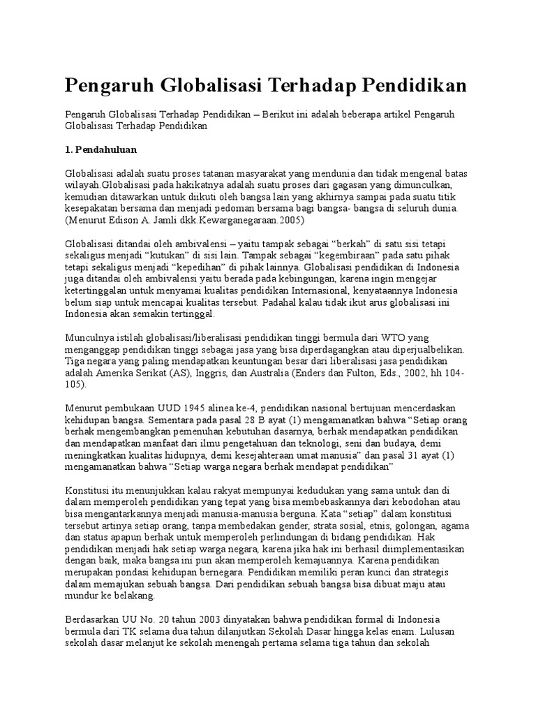 DOC) CONTOH MAKALAH DAMPAK GLOBALISASI TERHADAP PENDIDIKAN | Bahry …