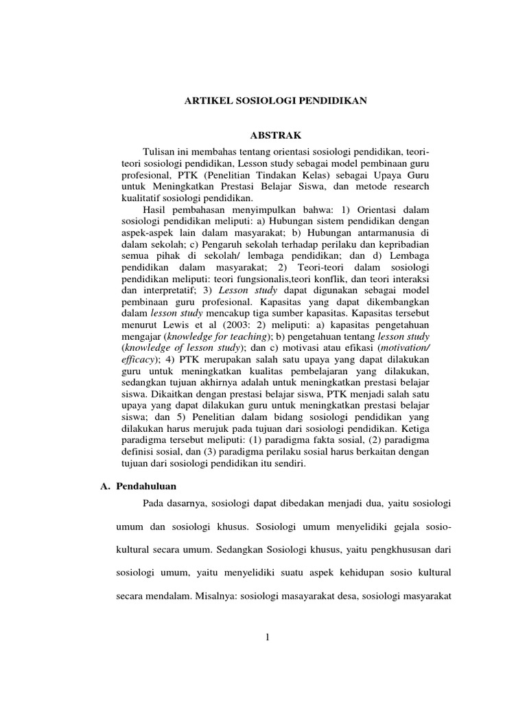 DOC) Artikel Sosiologi Pendidikan | Adib M - Academia.edu