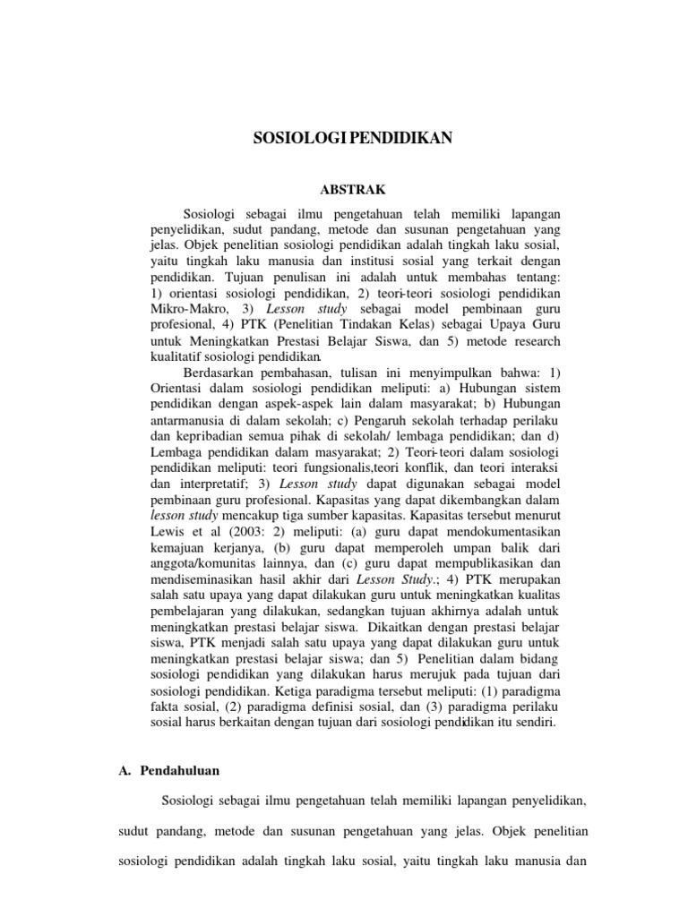 DOC) Sosiologi pendidikan | dedi haryanto - Academia.edu