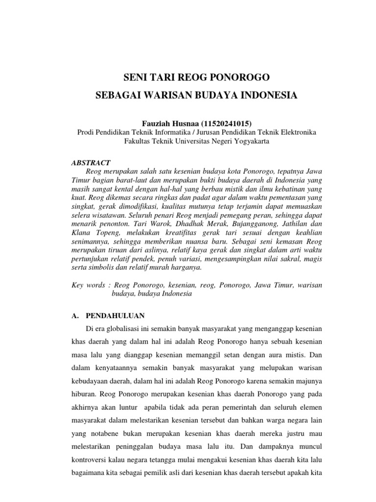 PDF) SEJARAH DAN DINAMIKA SENI REYOG PONOROGO