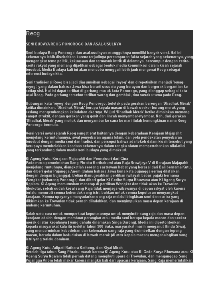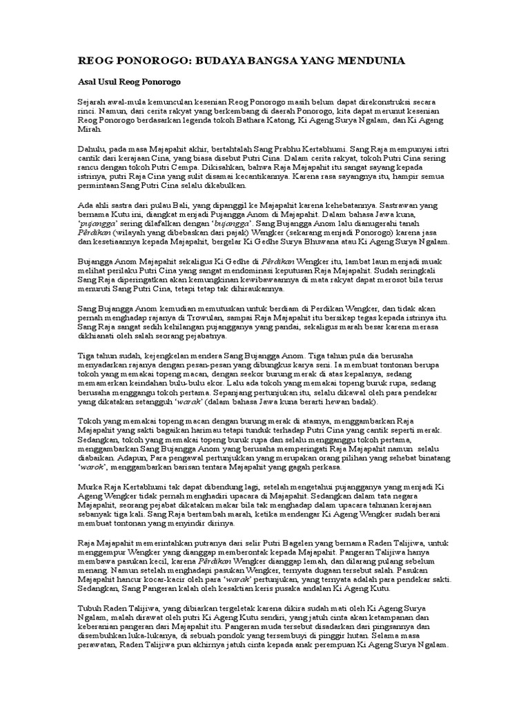 Asal Usul Reog Ponorogo Dalam Bahasa Jawa
