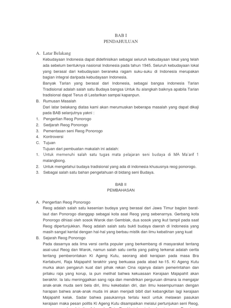 pernyataan yang mengandung unsur deskripsi umum adalah…a. reog …