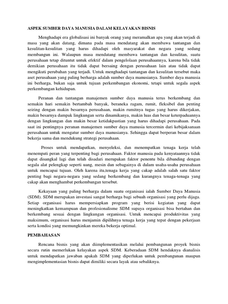 DOC) Aspek Sumber Daya Manusia Studi Kelayakan Bisnis | Yopi Ofiza - Academia.edu