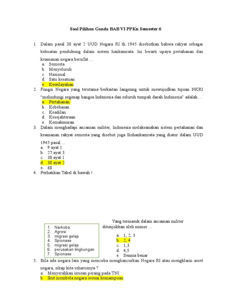 Soal Pilihan Ganda BAB VI PPKn
