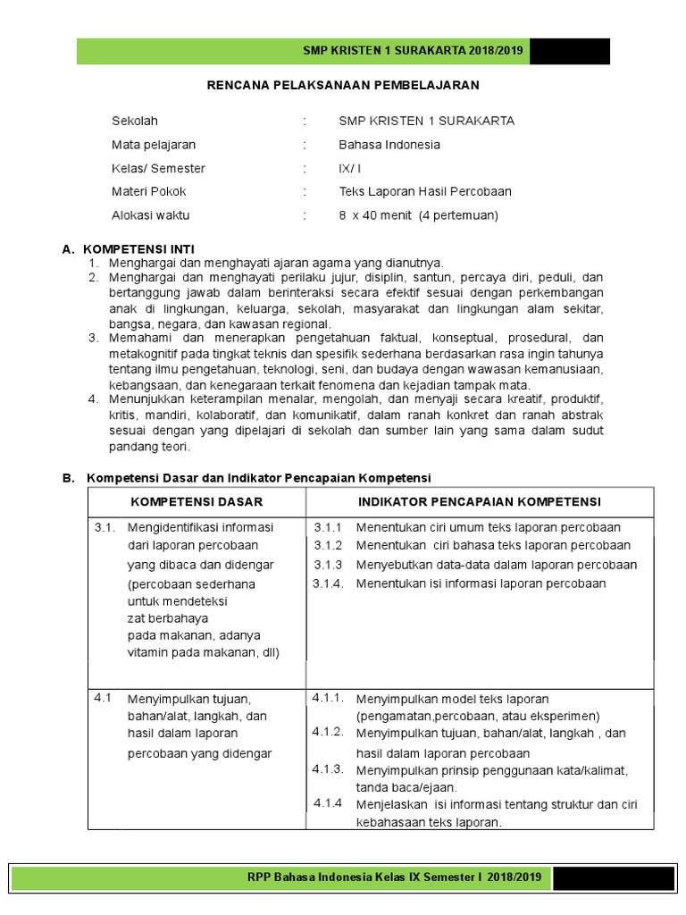 Rpp Teks Laporan Hasil Percobaan